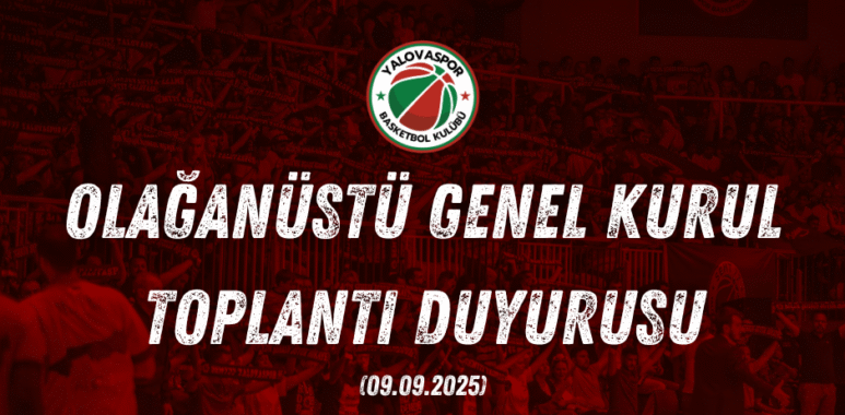 Yönetim kurulumuz 09.09.2025 tarihinde “Bayraktepe Mahallesi Yakup Acar Caddesi No:42 Yalova Spor Basketbol Kulübü Derneği Merkez/YALOVA” adresinde dernek ofisinde toplanarak Yalovaspor Basketbol Kulübü’müzün olağanüstü genel kurulunun 19.10.2025 tarihinde saat 14.00’te Yalova Spor Basketbol Kulübü Derneği Ofisi’nde aşağıdaki gündem maddeleriyle yapılmasına gerekli çoğunluk sağlanamaması halinde 26.10.2025 tarihinde yine aynı yer ve saatte yapılmasına oy birliğiyle karar verilmiştir.
